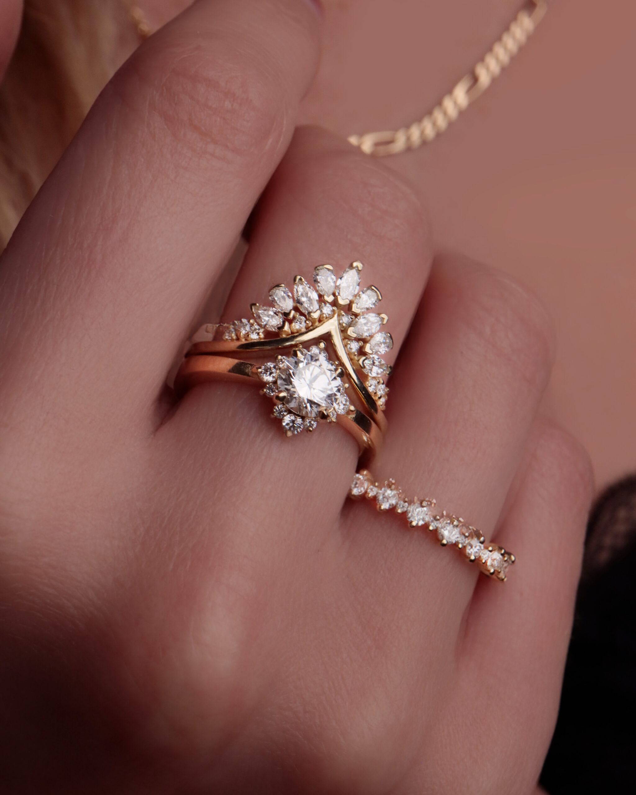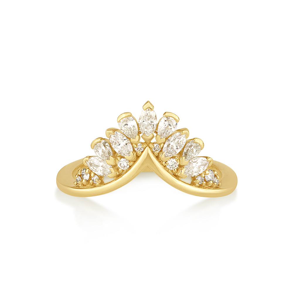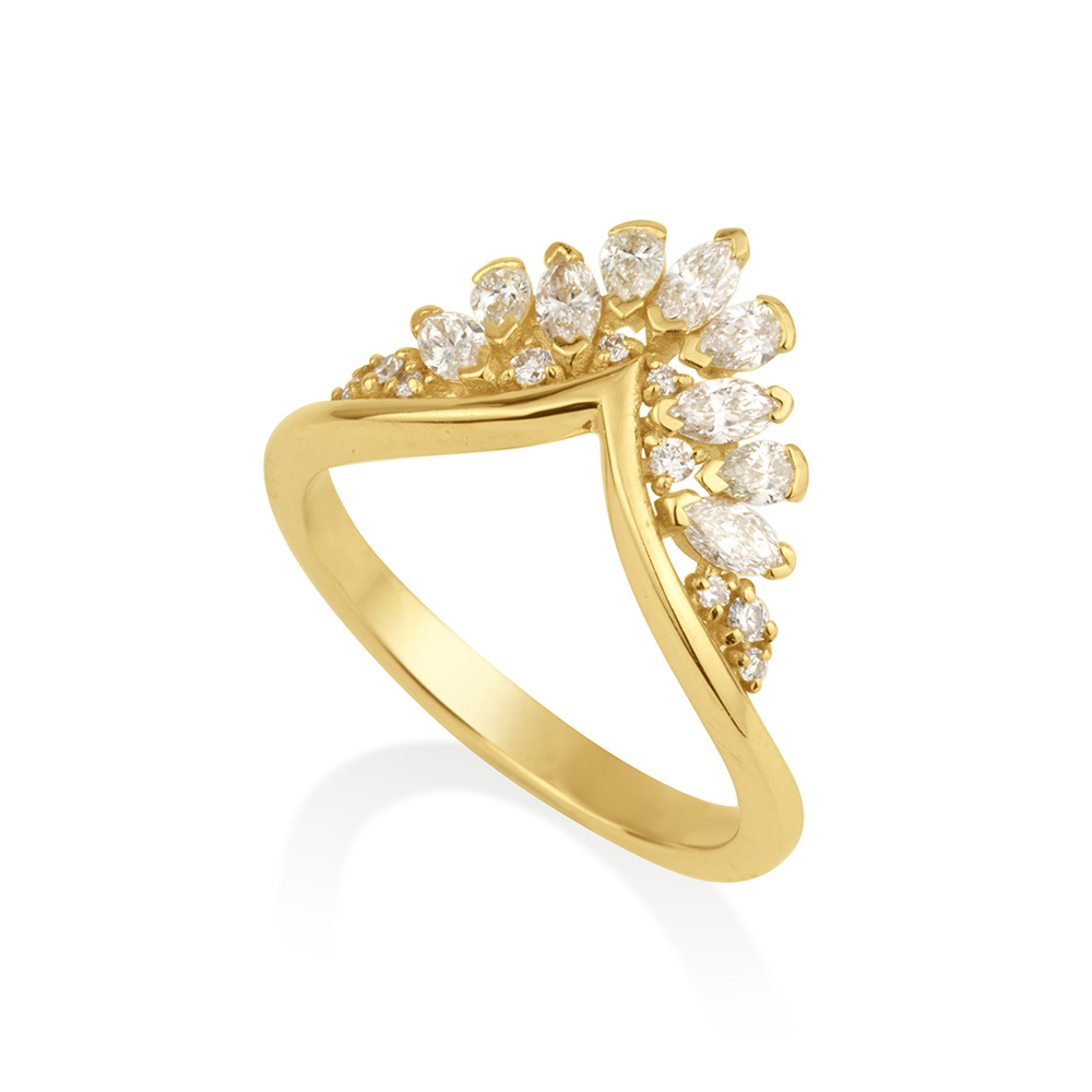 Arena Ring in White Diamonds displays a magnificent cluster of marquise, drop and round cut diamonds, carefully fanned out to create this sensational ring. A majestic creation that will be a perfect addition to your Malka ring collection.