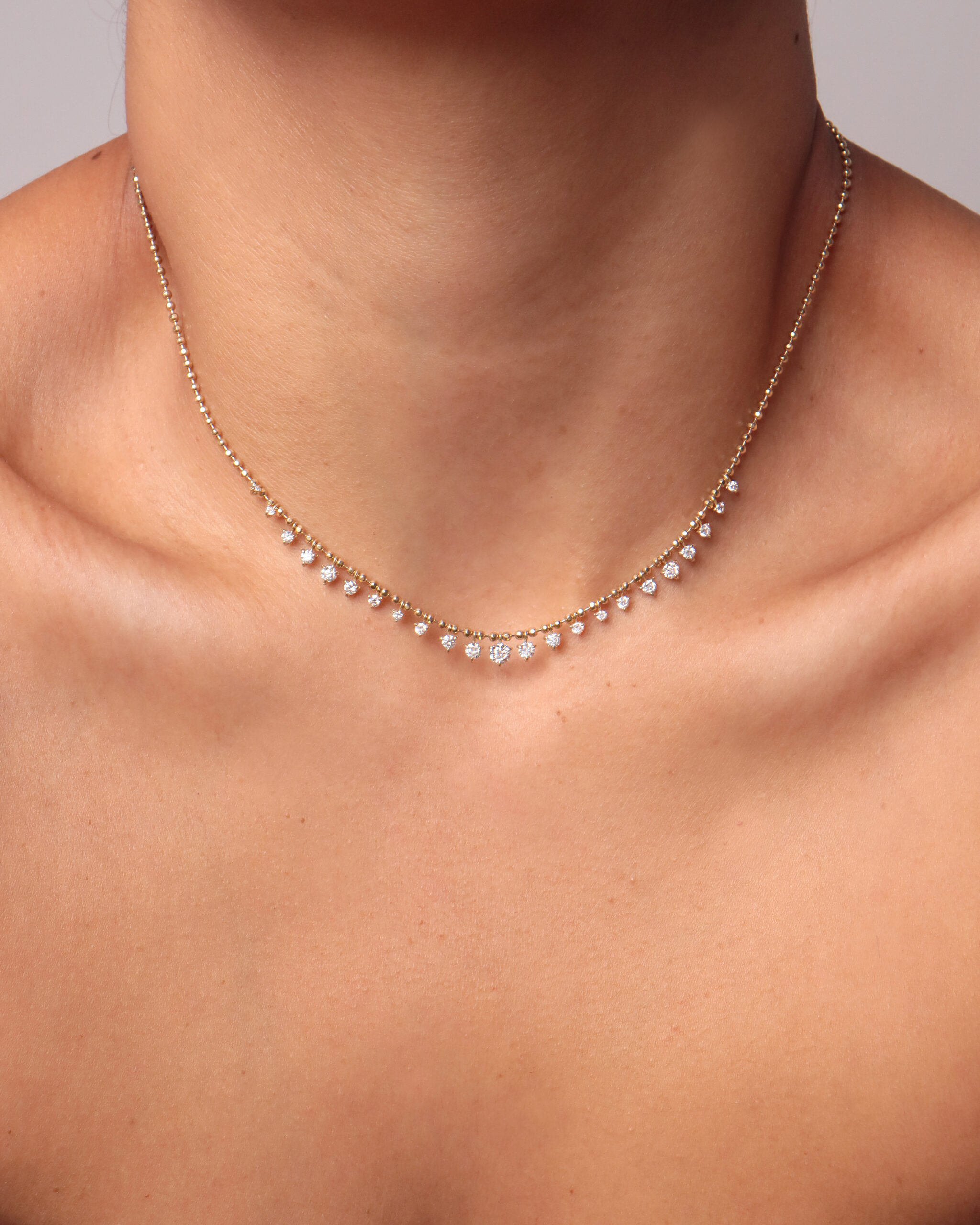 Malka’s Diamond Degrade Military Necklace embodies the young adult’s obligation with a touch of elegance and alleviation. It is a breathtaking design, with patterns of degrade exquisite diamonds — a perfect elegant twist to Malka’s Military Chain.